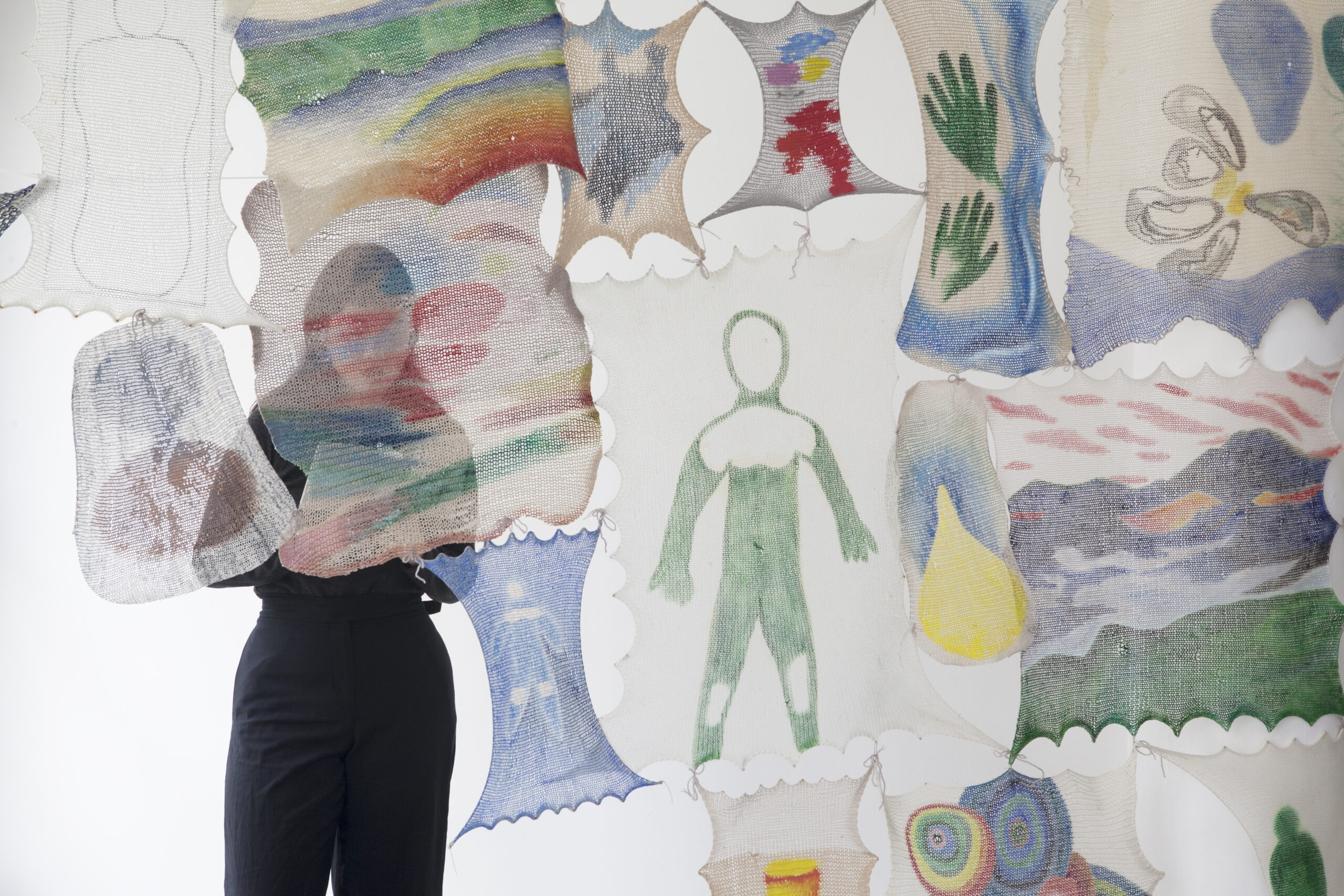 For its third participation in Asia Now, Galerie Anne-Laure Buffard presents Home, a Duo Show by Korean artists and twin sisters Park Chae Dalle and Park Chae Biole with the participation of Japanese ceramic artist Yoshimi Futamura. Born in 1997 and working between France and Korea, the Park Chae twins practice painting, knitting, poetic writing and sculpture and deploy two singular artistic universes with multiple resonances. Curators of this exhibition project, Park Chae Dalle and Park Chae Biole chose to recreate the world of their childhood home, where their father introduced them to drawing and painting. Through works on canvas and textiles from Park’s Family and Hand to hand series by Park Chae Dalle, installations and paintings on Park Chae Biole’s bamboo blinds, the two sisters sketch out a new way of inhabiting space with which they invite Yoshimi Futamura to engage in dialogue. The ceramics in the Black Hole and Rebirth series, created in response to the Fukushima disaster (2011), will adorn this domestic space, raising questions about the way in which our foundations can suddenly be altered and rebuilt.